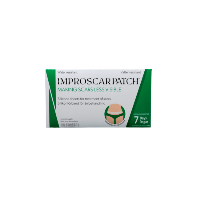 Improscar Patch è un cerotto in silicone resistente all'acqua utilizzato per ridurre la visibilità delle cicatrici da chirurgia plastica dopo un'addominoplastica o un'addominoplastica. Ogni cerotto Improscar rimane sulla cicatrice per una settimana in media e può essere utilizzato anche sotto la doccia. Improscar Patch per Addominoplastica contiene i cerotti normalmente necessari per ridurre la visibilità delle cicatrici che si formano dopo un'addominoplastica.