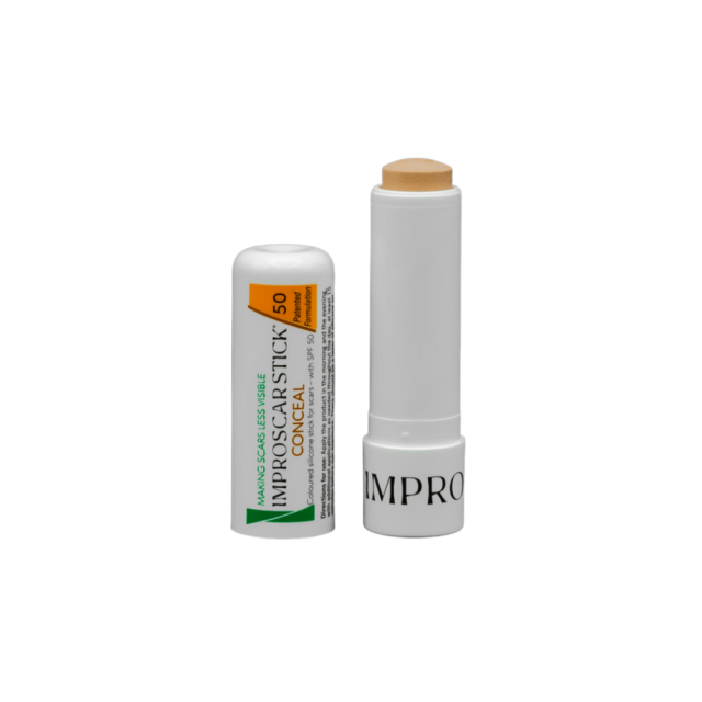 Improscar Stick® 50´Conceal crea un ambiente impermeabile e ottimale per la maturazione delle cicatrici. Protegge inoltre la cicatrice da stress esterni come raggi UV, pioggia, sudore e altro ancora. Questo lo rende la scelta perfetta per chi ha una cicatrice sul viso o in altre zone visibili del corpo. Indipendentemente dalla zona del corpo in cui si presentano le cicatrici, Improscar vi aiuterà a ridurne la visibilità . Improscar Stick® 50 Conceal è realizzato con silicone di grado medicale che fornisce uno strato protettivo sicuro.